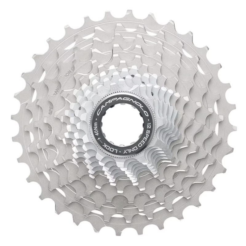 La cassette Campagnolo 12 vitesses réussie le pari de s'adapter aux corps de roue libre Campagnolo 11 vitesses. Une plus grande plage de rapports sans sacrifier la précision et les performances. Les ingénieurs Italiens ont optés pour une réduction de l’épaisseur des pignons, deux triplettes de pignons et des entretoises identiques pour le reste du montage pignon par pignon. Le dessin des dents particulier subit un traitement de surface pour garantir une parfaite tenue dans le temps.