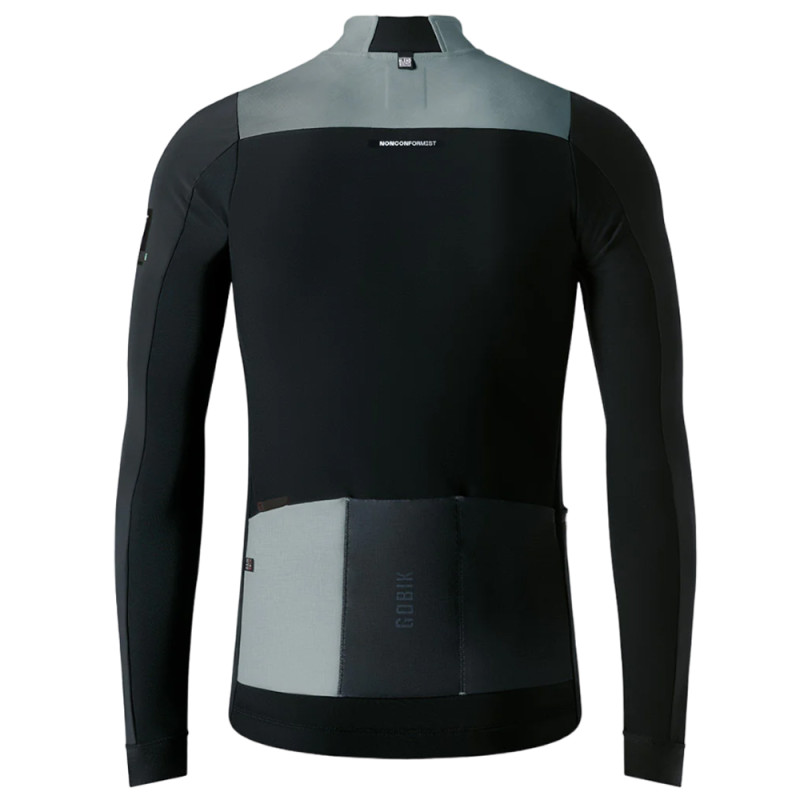 Cette Gobik Mist Blend 2.0 Trooper offre une structure près du corps, avec des manches en tissu laminé pour favoriser l’aérodynamisme. Le col haut avec un insert élastique à l’arrière garantit un meilleur ajustement. Les poignets sont optimisés sur le plan anatomique, alors que la ceinture allongée en silicone assure un bon maintien durant l'effort. Enfin, cette veste est pratique avec ses 3 poches en tissu texturé avec système GRS, plus sa poche additionnelle en filet.