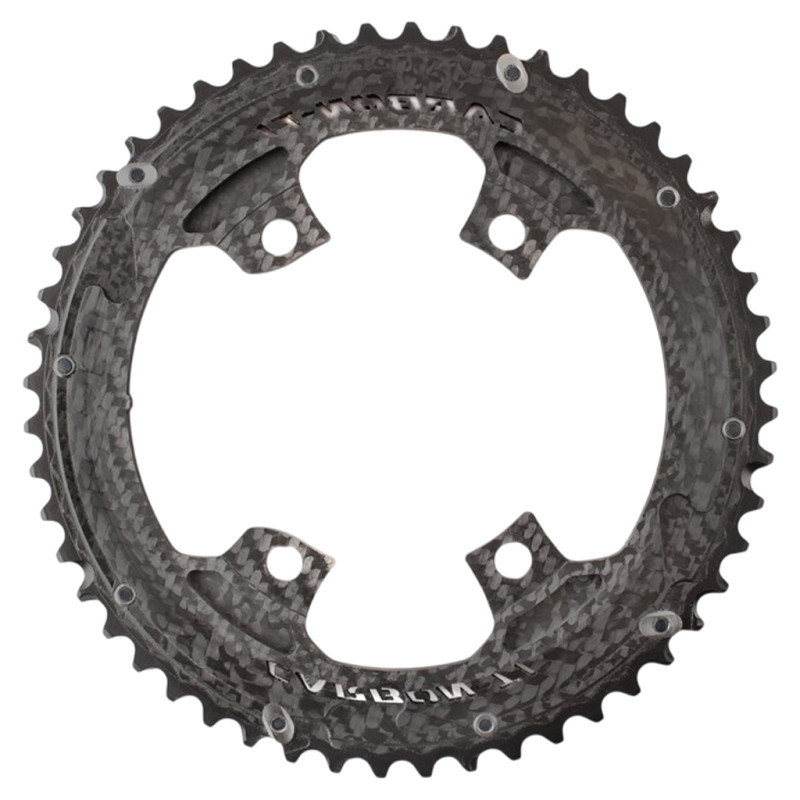 À noter que ce Carbon-Ti X-CarboRing EVO est un plateau externe conçu pour les pédaliers Shimano à 4 bras avec un entraxe (BCD) de 110 mm.