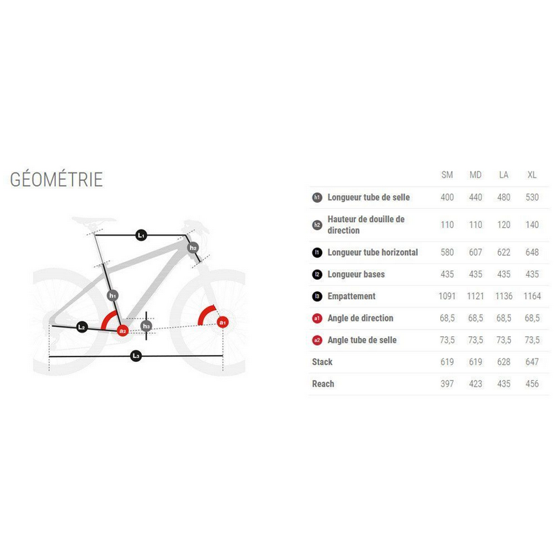 Taille ML : 173 - 180 cm - entrejambe : 81 - 86 cm - Cadre Aluminium - Transmission Deore 12v - Fourche RockShox Debon air