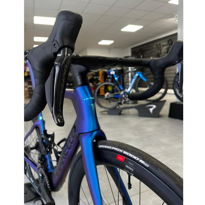 Ce Pinarello New Dogma F Disc G112 Luxter Blue reconditionné est équipé du groupe électrique Shimano Dura Ace Di2 12 vitesses, qui propose un changement de vitesses précis ainsi qu’un freinage à disques performant dans toutes les conditions. Enfin, les roues DT Swiss ARC 1400 garantissent un maximum de rendement pour que vous soyez le plus performant possible sur tous les terrains, en montagne comme sur le plat.