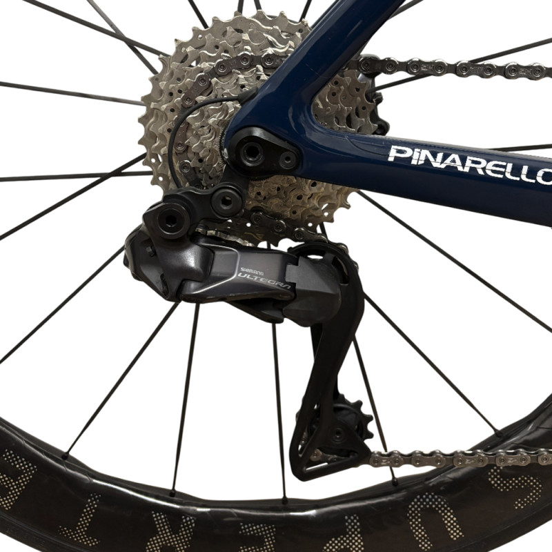 Ce Pinarello Dogma F Ineos Blue est monté avec un groupe Shimano Ultegra Di2, qui assure un changement de vitesses précis ainsi qu'un freinage à disques performant dans toutes les conditions. Les roues Super Team en carbone sont idéales pour toutes les situations, elles apportent stabilité, réactivité et aérodynamisme. Le cockpit intégré MOST renforce la rigidité tout en assurant un poste de pilotage ergonomique et épuré pour faire de ce Pinarello Dogma F Ineos Blue une véritable machine de guerre pour briller en course.