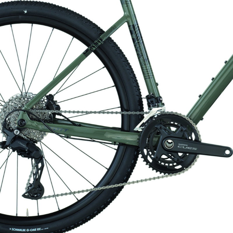 - Cadre : Aluminium 6061 double butted, géométrie Scott Gravel, passage de câbles interne