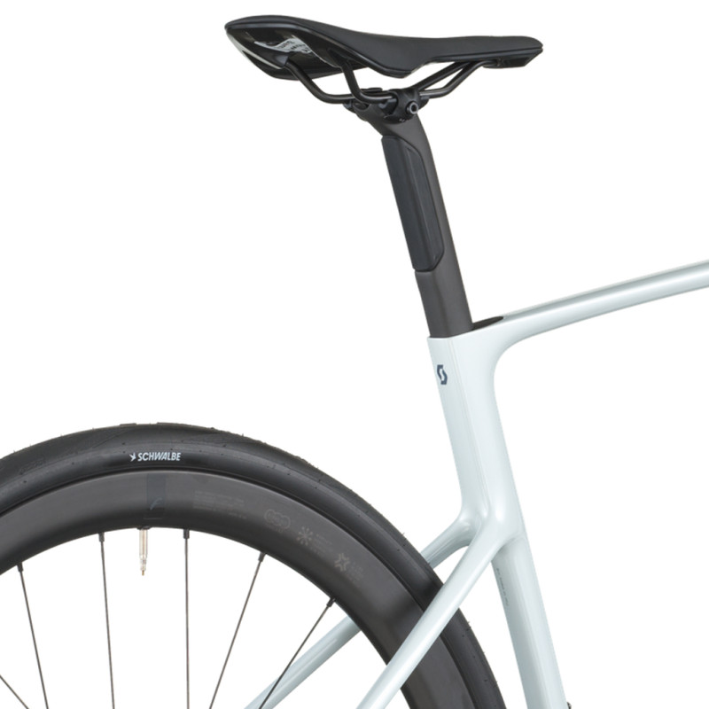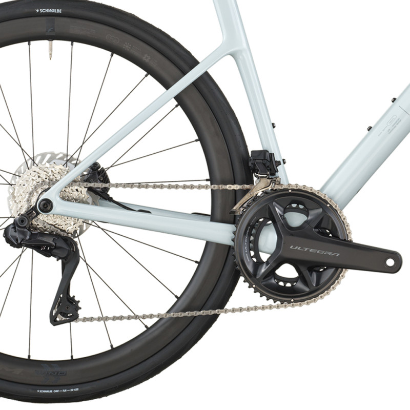 Le Scott Addict 20 Cumulus White est un vélo très polyvalent qui offre la vitesse d’un vélo de course et le confort d’un vélo typé endurance. Il vous permettra donc de briller dans toutes les conditions, que ce soit à l’entrainement entre potes, sur une cyclosportive ou en course.