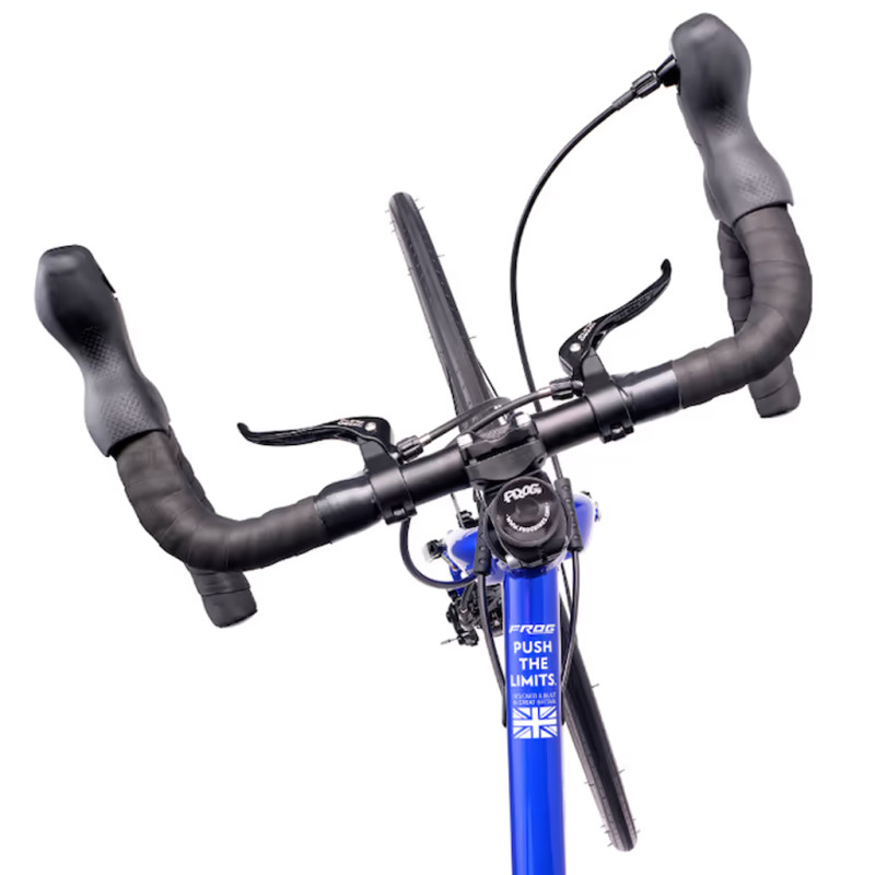 Doté d’une transmission 9 vitesses (11-34T) conçue pour les petites mains, de pédaliers Frog brevetés et de freins à disque Tektro de 160 mm, le Road 53 permet des changements de vitesse précis et un freinage fiable. Son guidon compact et ses composants ergonomiques offrent une manipulation intuitive, permettant aux enfants de prendre confiance et de profiter pleinement de chaque sortie.
