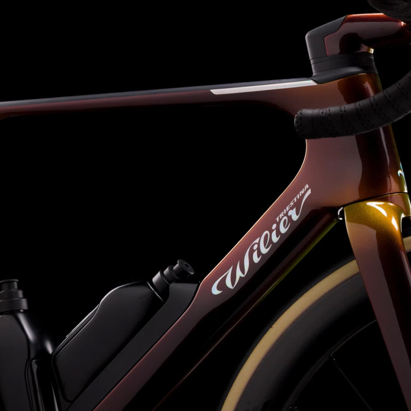 Développé en collaboration avec les coureurs de l’équipe Groupama FDJ, le Wilier Filante SLR ID2 représente l’évolution ultime des vélos aérodynamiques. Redéfinissant les standards de la performance, ce vélo aéro propose un maximum d’efficacité, de confort et de contrôle. Ce vélo est très joli dans son coloris Solar Bronze, qui capture la lumière pour mieux la restituer dans des reflets métalliques qui changent à chaque regard. Le cadre est réalisé avec trois types de fibres Toray (T800, T1100 et M46JB) pour créer une synergie optimale entre réactivité, rigidité et légèreté.