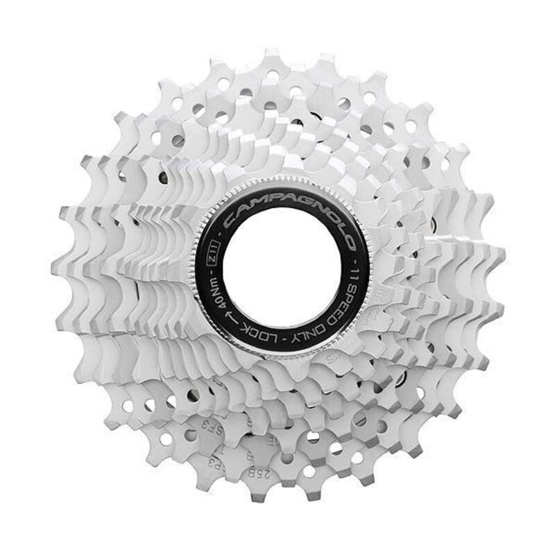 Eine ebenso perfekte Schaltung wie bei Campagnolo Record oder Super Record, ein Preis, der um zwei- bis dreimal niedriger ist, eine lange Lebensdauer (länger als bei Super Record) – die unverzichtbare 11-fach-Kassette.