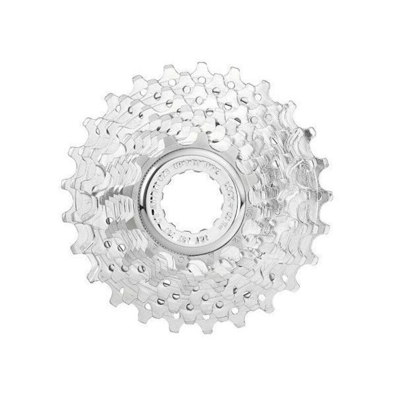 Das Profil der Zähne der Campagnolo Veloce 10v-Rennradkassette wurde mit der Ultra-Drive-Geometrie entworfen, die den Kettenlauf auf den Ritzeln erleichtert und präzise, schnelle und geräuscharme Schaltvorgänge ermöglicht. Ab diesem Jahr ist die Kombination 11-25 erhältlich, die ideal zu CT-Kettenblättern passt.