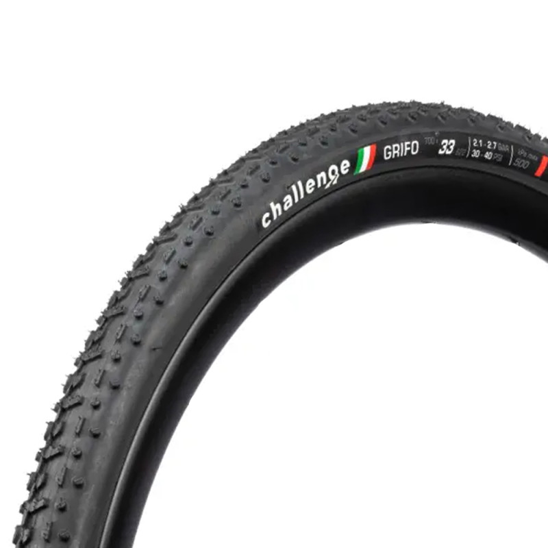 Der Reifen Challenge Grifo Black ist auf Leistung ausgelegt und begleitet Sie auf jedem Untergrund, egal ob trocken oder nass. Wenn Sie eine komplette Cyclocross-Saison mit nur einem Reifensatz fahren möchten, sind die Challenge Grifo Black genau die richtige Wahl! Denn sie glänzen sowohl auf schlammigen Strecken als auch auf trockenen Rundkursen. Dieser Reifen bietet dank eines speziellen Mittelbereichs eine hervorragende Traktion beim Treten, während die Stollen auf der gesamten Oberfläche für guten Grip in Kurven sorgen.