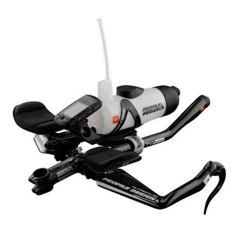 Cleveres System für einfache Flüssigkeitszufuhr und ständige Sicht auf den Tacho in aerodynamischer Position.