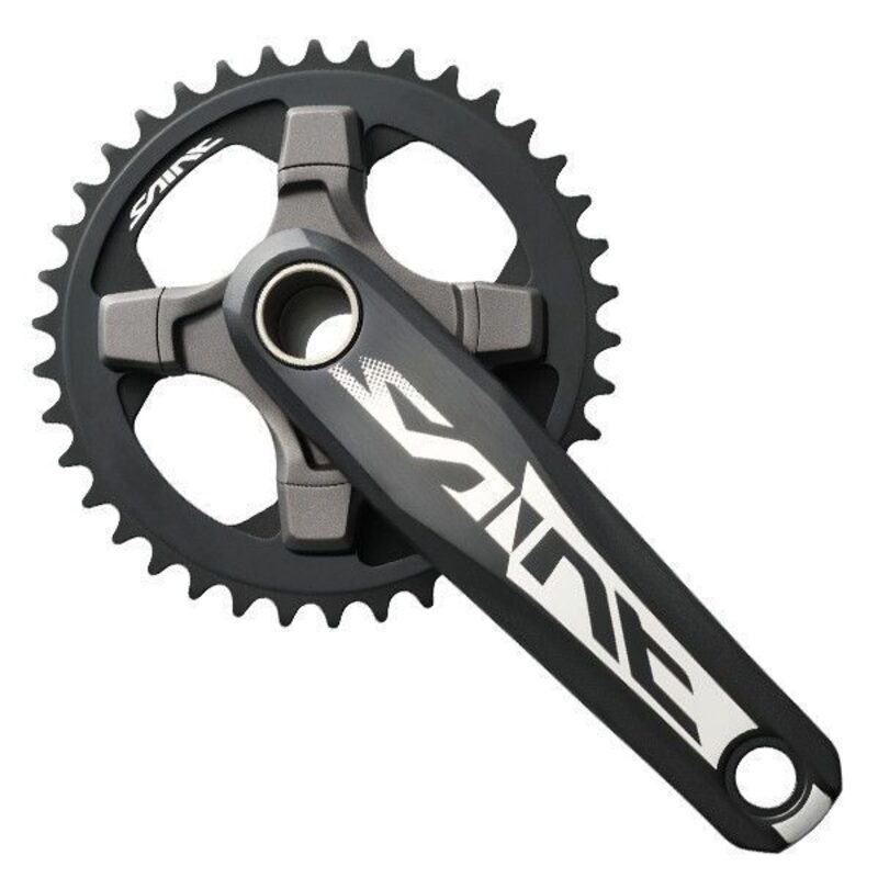 Die Shimano Saint-Kurbelgarnitur besteht aus hochwertigem Duraluminium, einem besonders ausgeklügelten Material, das das Gewicht gering hält und gleichzeitig hervorragende Festigkeitseigenschaften aufweist. Die Achse und die Pedalaussparungen sind aus Stahl gefertigt, was für zusätzliche Festigkeit und Langlebigkeit sorgt.