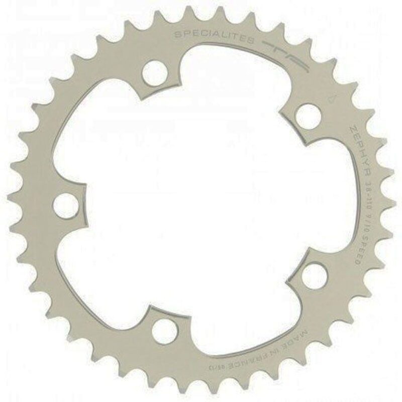 Le plateau vélo route Spécialités TA Zephyr 110 mm est un modèle à la fois léger et résistant. Il bénéficie d’une conception soignée et d’un usinage de précision dans de l’aluminium. Ce plateau est compatible 9 et 10 vitesses. Ce plateau d’exposition a été démonté d'un pédalier neuf et n’a donc jamais été utilisé.