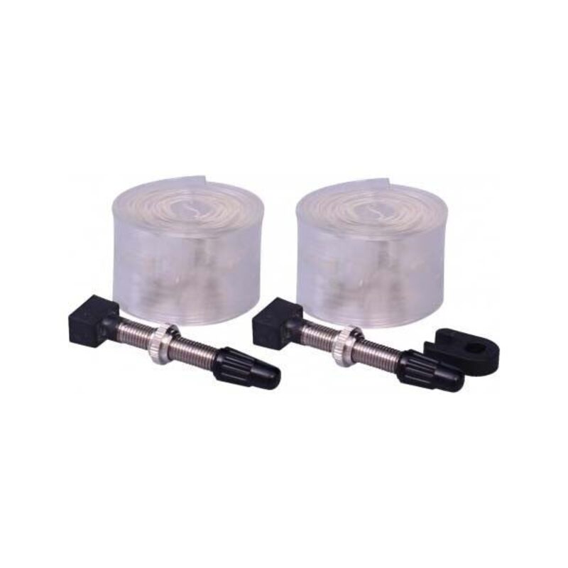 Mit diesem Umrüstsatz können Sie Tubeless Ready- oder Tubeless-Reifen auf Standardfelgen montieren. Der Satz enthält einen Felgenrand, der normalerweise ohne Kleben montiert werden kann. Außerdem enthält es ein Paar Tubeless-Ventile sowie die für deren Montage und Demontage erforderlichen Werkzeuge.