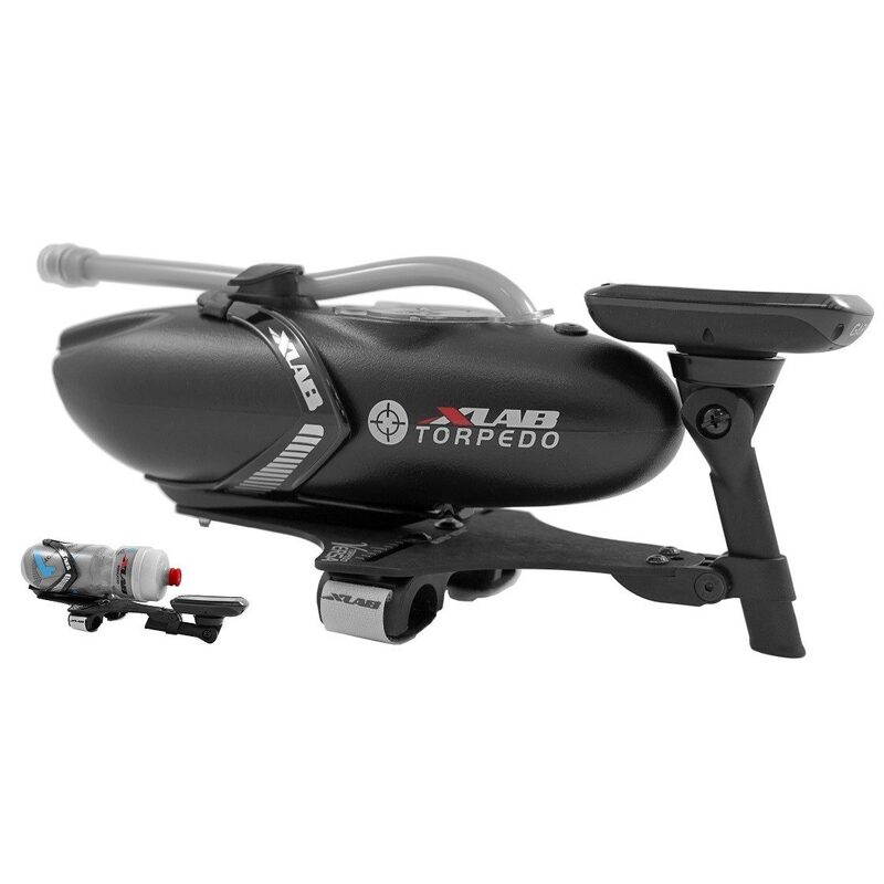 Die auf einer Aluminiumhalterung montierte Flaschenhalterplatte von Xlab bietet eine außergewöhnliche Steifigkeit und verhindert störende Vibrationen. Das Xlab Torpedo Versa 200 System hat ein Fassungsvermögen von 768 ml und ermöglicht dank seines speziellen, zum Gesicht gerichteten Schlauchs die direkte Flüssigkeitsaufnahme mit dem Mund.