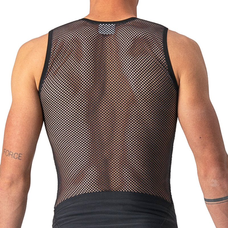 Castelli hat sich bei der Entwicklung dieses Unterhemds auf Leichtigkeit und Effizienz konzentriert. Es besteht aus Magic Mesh, einem Material, das Schweiß extrem effizient absorbiert. Da es kein Lycra enthält, kann Feuchtigkeit schneller verdunsten.