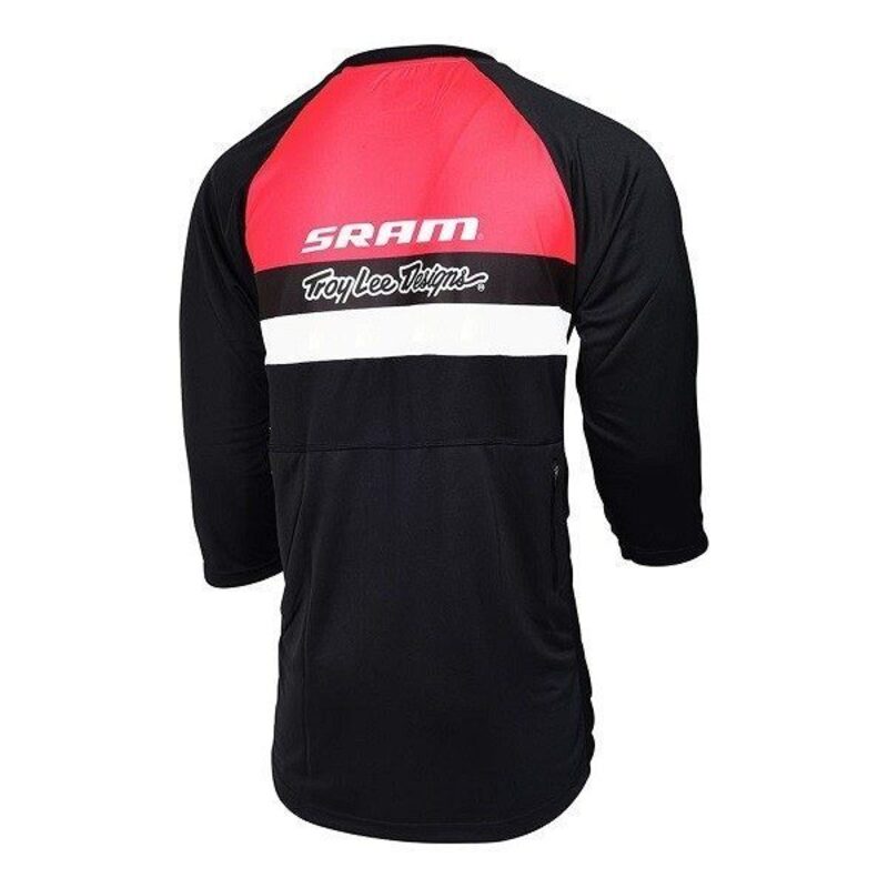 Das Troy Lee Designs Ruckus Trikot ist schlicht und stilvoll, mit dem Logo der amerikanischen Marke Sram auf dem Oberteil. Es bietet eine gute Belüftung, insbesondere dank seiner 3/4-Ärmel, die eine bessere Luftzirkulation ermöglichen.