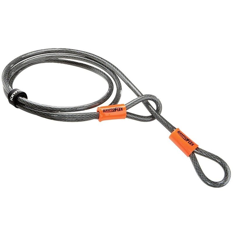 Das Kryptonite Kryptoflex 220 cm Fahrradschloss mit zwei Schlaufen ist eine hervorragende Ergänzung zu einem primären Fahrradschloss, wie beispielsweise einem Bügel- oder Vorhängeschloss. Damit können Sie das Vorderrad und andere Komponenten Ihres Fahrrads sichern. Das Kabel besteht aus 10 mm dickem geflochtenem Stahl und ist sehr widerstandsfähig gegen Durchschneiden.