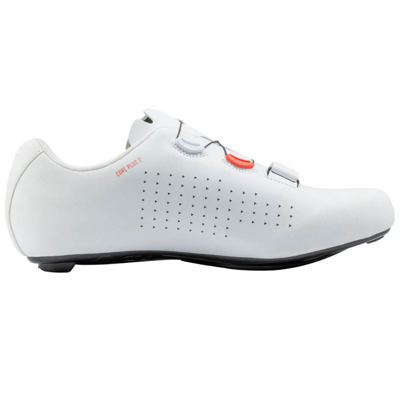 Die Northwave Core Plus 2 Rennradschuhe sind perfekt für Radfahrer, die sich mit erschwinglichen, leichten und gut belüfteten Schuhen ausstatten möchten. Sie verfügen über ein nahtloses Monocoque-Obermaterial, das sich durch hervorragende Qualität und Komfort auszeichnet. Vier Mesh-Einsätze sowie mikroperforierte Poren sorgen für eine optimale Atmungsaktivität des Fußes unter allen Bedingungen. Das Verschlusssystem ist eine raffinierte Kombination aus Klettverschluss und mikrometrischem SLW3-Rädchen. Der Klettverschluss befindet sich am Spann und ermöglicht die Einstellung des Drucks des Materials auf die Zehen. Das Einstellrad sorgt für einen präzisen Halt des oberen Fußbereichs, der beim Treten eine wichtige Rolle spielt.
