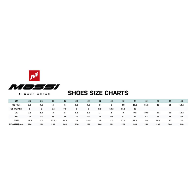 Die Massi Road Proteam bestehen aus hochwertigem Kunststoff und verfügen über Mesh-Einsätze, die für eine sehr gute Atmungsaktivität sorgen. Das Verschlusssystem ist mit dem Double ATOP-Verschluss der dritten Generation ausgestattet, der den Fuß perfekt fixiert und eine gute Verbindung zwischen Schuh und Fahrradpedal gewährleistet. Die Energieübertragung ist ausgezeichnet, mit ausreichender Flexibilität für optimalen Komfort der Füße.
