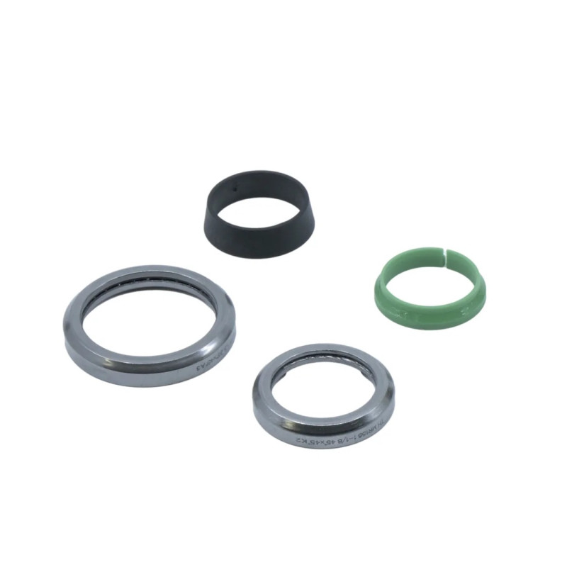 Das Kit besteht aus dem unteren Lager auf der Gabelseite und dem oberen Lager auf der Vorbau-Seite sowie dem Spaltring zur Einstellung des Lenkspiels.