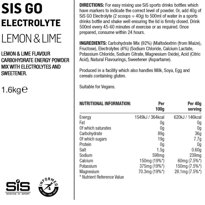 Hergestellt in Großbritannien, SiS (Science in Sport) Ltd, The Innovation Centre 35 Churchill Way, Nelson Lancashire BB9 6RT UK