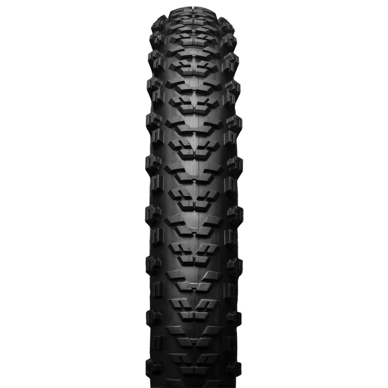 Sein voluminöser Querschnitt von 29x2,40 ermöglicht das Fahren mit niedrigem Reifendruck für eine optimale Verformung des Reifens auf dem Boden, um eine bessere Haftung und eine ausgezeichnete Traktion zu erzielen. Darüber hinaus sorgt sein eher rundes Profil für eine leistungsstarke Lauffläche und seitliche Stollen bieten einen hervorragenden Halt in Kurven. So erfolgt beim Einlenken in eine Kurve ein flüssiger und sicherer Übergang zwischen der Mitte und der Seite des Reifens.