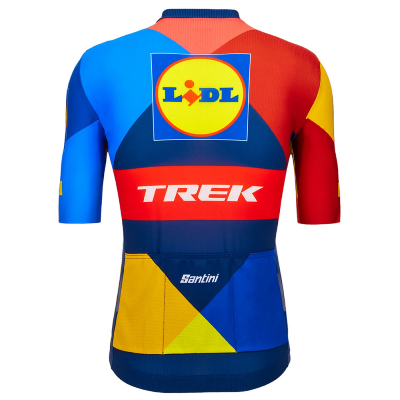 Als Hauptsponsor des Trek-Teams seit der Tour de France 2023 hat Lidl beschlossen, in den Radsport zu investieren, um Radfahrer in seine Geschäfte zu locken. Zu diesem Zweck hat die Marke Santini ein stylisches Trikot in den Farben des Lidl-Logos entworfen. Dieses besondere Trikot wurde aus hochmodernen, leichten und widerstandsfähigen Stoffen hergestellt. Auf der Vorder- und Rückseite sorgt der Teil aus Polyester-Mikrofaser für einen guten Feuchtigkeitstransport. Die Seiten sind über die gesamte Länge aus Mesh-Gewebe gefertigt, um die schnelle Trocknung zu optimieren.