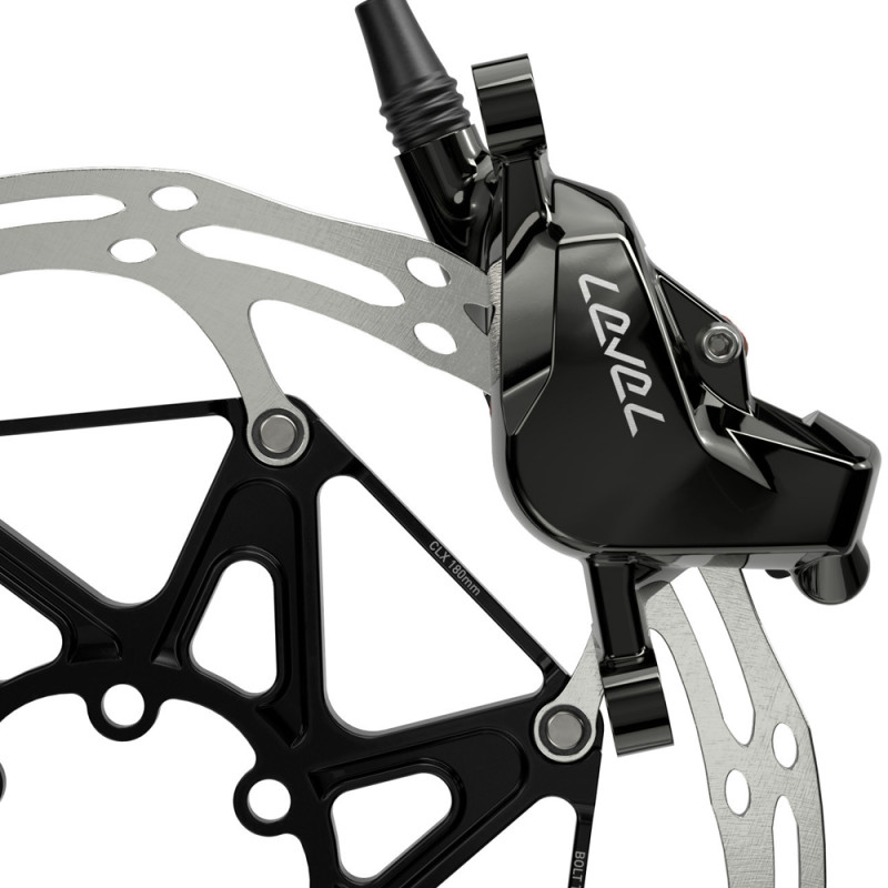 Lieferumfang: 1 Scheibenbremse Level Ultimate Stealth (Hebel + 2-Kolben-Bremssattel), 1 MMX-Klemmring, 2 Befestigungsschrauben, 1 Einsteckstift, 1 Olive, 1 Transportsicherung.