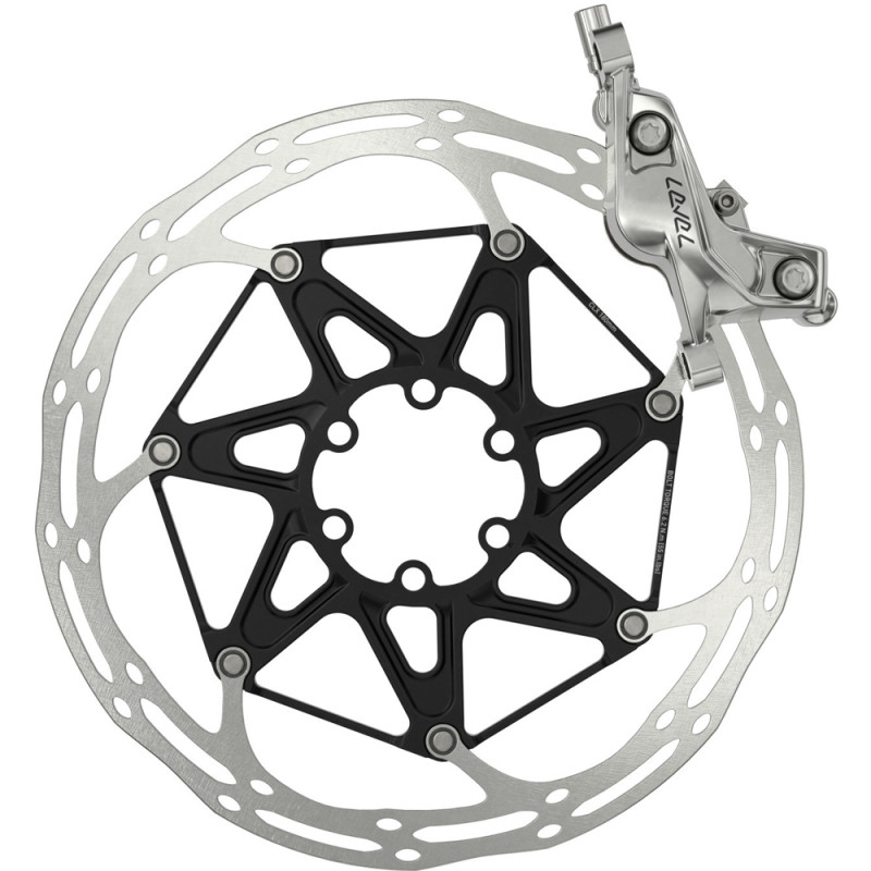 Lieferumfang: 1 Scheibenbremse Level Ultimate Stealth (Hebel + 4-Kolben-Bremssattel), 1 MMX-Klemmring, 2 Befestigungsschrauben, 1 Einsteckstift, 1 Olive, 1 Transportsicherung.