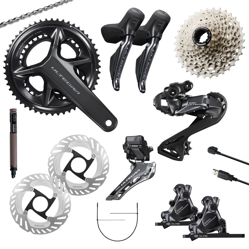 Nutzen Sie unseren Konfigurator, um die Komponenten der Shimano Ultegra Di2 12v R8170-Gruppe auf Basis der Hebel ST-R8170 und der Bremssättel BR-R8170 individuell anzupassen.