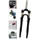 Diese SR Suntour-Gabel sorgt für Komfort auf Ihrem Trekkingrad mit 28"-Rädern. Diese Luft-/Öl-Gabel mit 63 mm Federweg ist mit Rahmen mit Felgenbremsen (V-Brake) oder Scheibenbremsen (IS-Standard) kompatibel und gleicht Unebenheiten auf Wegen oder Straßen perfekt aus.