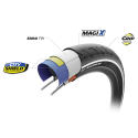 Durch die Verwendung der Michelin Magi-X-Gummimischung entsteht ein Reifen mit guter Haftung unter allen Bedingungen, egal ob die Straße trocken oder nass ist. nichts kann Sie auf Ihren täglichen Fahrten aufhalten!