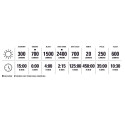 - Maximale Leuchtdauer: 450 Stunden