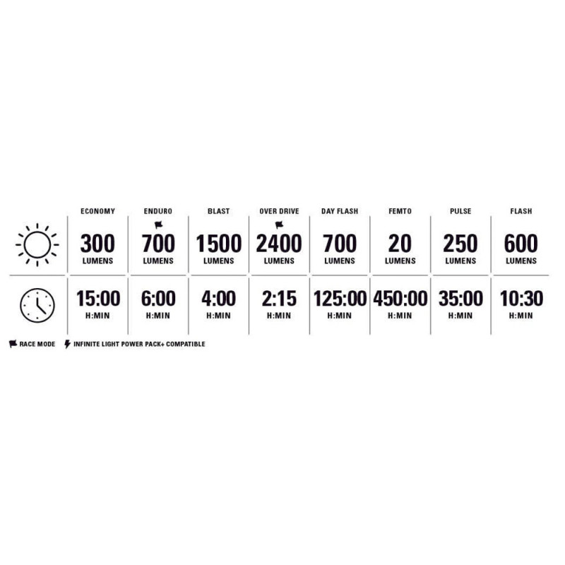 Die Mega Drive 2400+ ist die leistungsstärkste Lampe der Marke Lezyne. Sowohl in Bezug auf die Leistung als auch auf die Autonomie ist sie ihren Mitbewerbern überlegen.