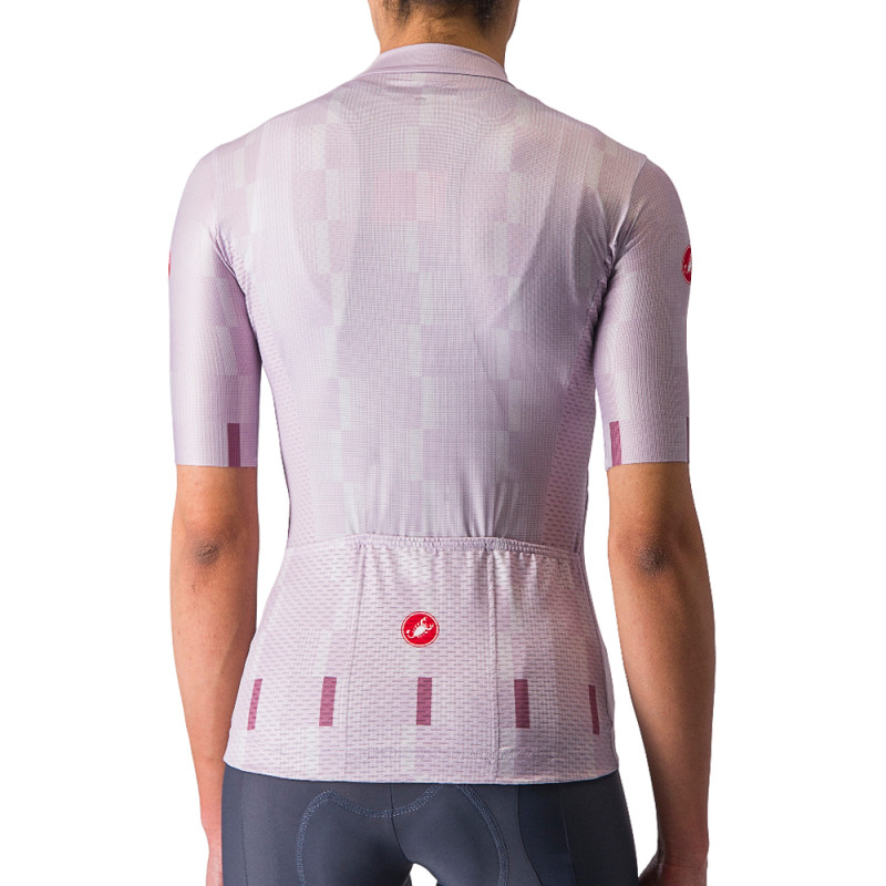 Das Trikot Dimensione von Castelli ist leicht und bequem, und mit seinem originellen Design werden Sie nicht unbemerkt bleiben. Es ist das ideale Trikot für heiße Sommerausfahrten.
