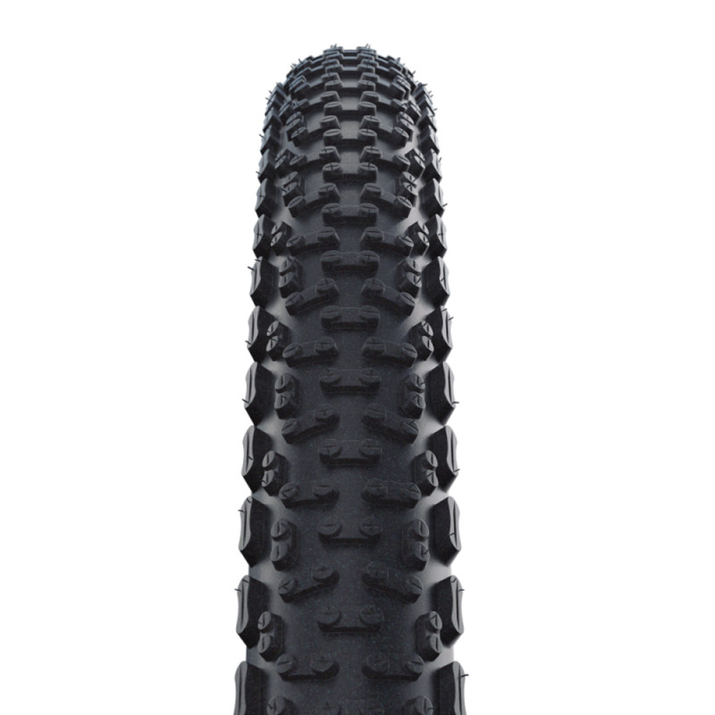 Parfait pour le gravel, les chemins et les sentiers difficiles, ce pneu offre une adhérence totale et une traction exceptionnelle grâce à sa bande de roulement agressive possédant des crampons prononcés. Les blocs latéraux assurent la sécurité dans les virages.