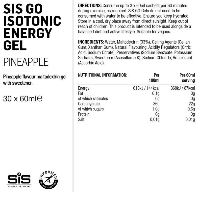 Das leicht verdauliche SIS GO Isotonic Energy Ananas Energiegel garantiert eine schnelle Kohlenhydratzufuhr und hilft Ihnen, Ihre Leistungsfähigkeit während der gesamten Anstrengung aufrechtzuerhalten.