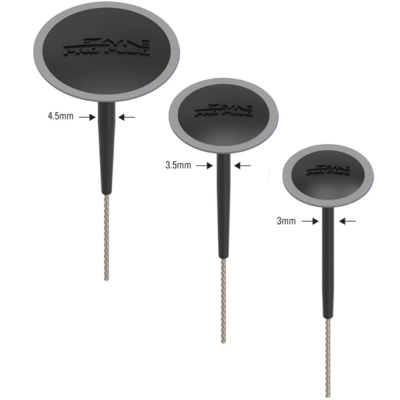 Das Reparatur-Set für schlauchlose Reifen Lezyne Tubeless Pro Plugs ist eine einfache und zuverlässige Lösung, um einen schlauchlosen Reifen zu Hause oder unterwegs zu reparieren. Dieses Set enthält Stopfen in verschiedenen Größen, mit denen Sie Löcher von 3 mm bis 4,5 mm reparieren können. Sie finden darin zwei Stopfen mit einer Größe von 3 mm, zwei mit einer Größe von 3,5 mm und zwei mit einer Größe von 4,5 mm.