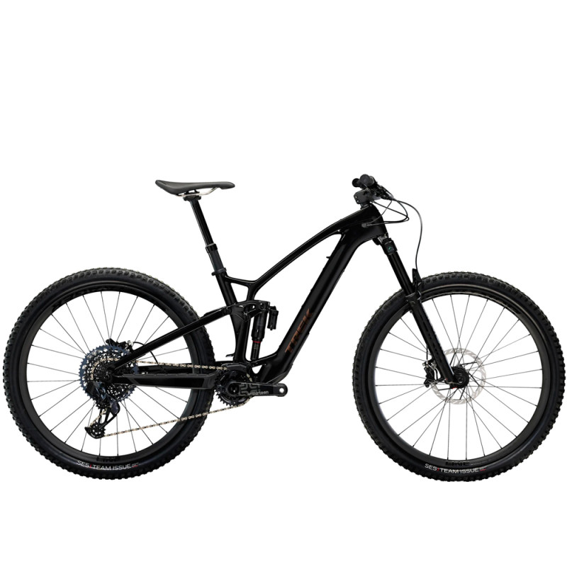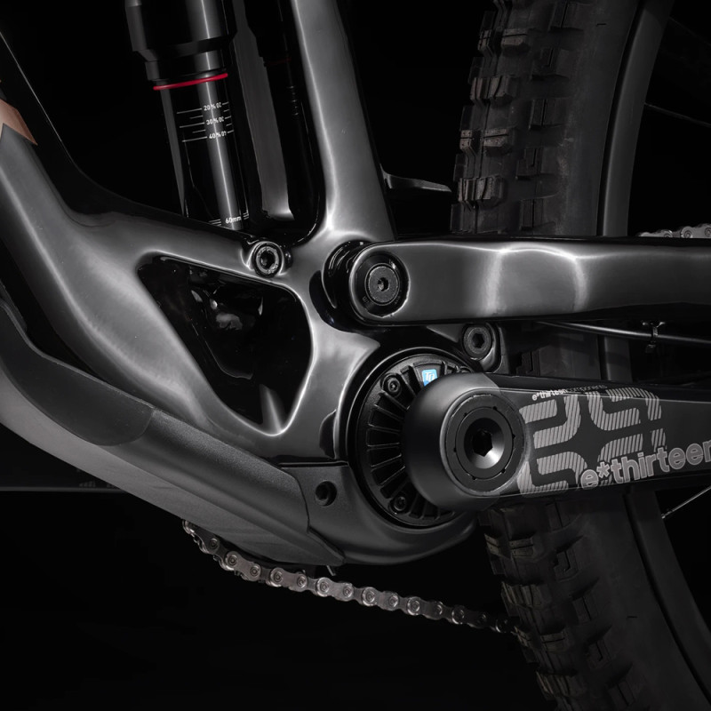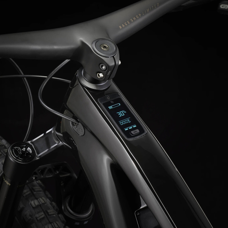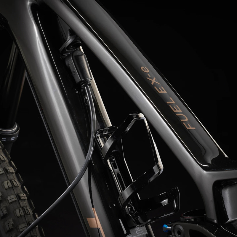 Das Trek Fuel Exe 9.8 ist dank seines kompakten TQ-HPR50-Motors mit einem Drehmoment von 50 Nm und einem 360-Wh-Akku ein leichtes E-Mountainbike, das insgesamt nur 1850 Gramm wiegt! Die Unterstützung dieses E-Mountainbikes hat den Vorteil, dass sie flexibel, leistungsstark und extrem leise ist und sich gleichzeitig für das Mountainbiken eignet. Das Trek Fuel Exe verfügt über einen 360-Wh-Akku, mit dem Sie durchschnittlich 1200 Höhenmeter zurücklegen können. Beachten Sie, dass Sie einen zusätzlichen Akku (nicht im Lieferumfang enthalten) mit 160 Wh hinzufügen können, der am Flaschenhalter angebracht wird, um Strecken mit insgesamt etwa 1800 Höhenmetern zu bewältigen. Diese Zahlen sind Richtwerte, die je nach Gewicht des Fahrers und der gewählten Unterstützungsstufe mehr oder weniger schwanken können.p>¤ Ein weiterer großer Vorteil dieses Fahrrads ist sein Verhalten auf Trails. Mit seinem geringen Gewicht von 18,1 kg ist das Fuel Exe 9.8 für ein E-MTB sehr wendig und leicht zu handhaben, sodass Sie das Gefühl eines muskelbetriebenen Mountainbikes wiederfinden können. Mit diesem E-Mountainbike werden Sie dank der RockShox Lyrik Select+ Gabel in Kombination mit dem RockShox Super Deluxe Select+ RT Dämpfer mit einem Federweg von 150 mm bzw. 140 mm, die Ihnen Flexibilität und Komfort bieten, viel Spaß haben und Ihre Lieblings-Singletrails mit voller Geschwindigkeit hinunterrasen können! Rahmen / Gabel / Dämpfer: - Rahmen: OCLV Mountain Carbon, herausnehmbarer Akku, interne Kabelführung, Schaltwerk aus Aluminium, 34,9-mm-Sattelrohr, obere Kettenführungsbefestigung, 55-mm-Kettenlinie, Mino Link, ABP, Boost148, UDH, 140 mm Federweg Motorisierung: - Motor: TQ-HPR50, 50 Nm, 250 Watt maximale Dauerleistung, 300 Watt Spitzenleistung Gruppe: - Schalthebel: SRAM GX Eagle AXS, 1x12 Gänge Peripheriegeräte: - Lenker/Vorbau: Integrierter Vorbau/Lenker Bontrager RSL, OCLV Carbon, Lenkerhöhe 27,5 mm, Breite 820 mm, Vorbauwinkel 0, Vorbaulänge 35 mm (S), 45 mm (M, L, XL). Räder & Reifen: - Vorderrad: Bontrager Line Comp 30, Tubeless Ready, 6 Loch, Boost110, 15-mm-Steckachse Allgemeine Informationen: - Gewicht: 18,17 kg Dieses Fahrrad hat eine maximale Gesamtgewichtsgrenze (einschließlich Gewicht des Fahrrads, des Fahrers und des Gepäcks) von 136 kg.