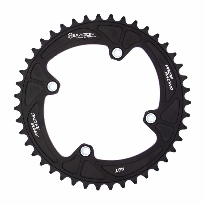 Pride Racing Hexagon-Krone mit integrierten Schrauben. Dank dieser Krone benötigen Sie nur Kronenschrauben, da die 4 Schraubenlöcher bereits in die Krone integriert sind. Dies verleiht der gesamten Konstruktion aus Krone und Tretlager zusätzliche Stabilität.