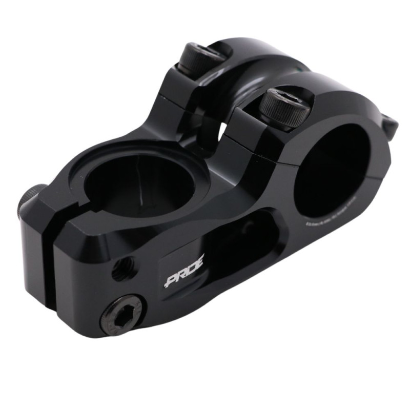 Dieser Vorbau CAYMAN V2 ist die neue Version des CAYMAN von Pride Racing. Er präsentiert sich in einem neuen, eleganten Design mit schönen Laserschnitten, die sein Aussehen und sein Gewicht optimieren. Dieser Vorbau wird vollständig mit CNC-Maschinen aus einem Block aus 6061-T6-Aluminium gefertigt, um eine einwandfreie Verarbeitungsqualität zu gewährleisten. Dank seiner 48 mm breiten Auflagefläche am Lenker gewinnt er an Steifigkeit und garantiert einen optimalen Halt des Lenkers. All diese Verbesserungen machen ihn extrem widerstandsfähig und langlebig. Darüber hinaus wurden die Schrauben durch Edelstahlschrauben ersetzt, um Korrosion zu vermeiden. Diese Schrauben sind genormt (DIN 912), sodass Sie leicht Ersatzschrauben finden können.