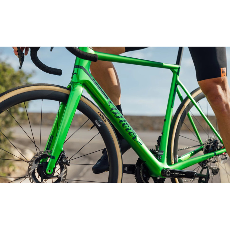 ¤Um diesen Rahmen der Spitzenklasse herum ist das Wilier Triestina Verticale SLR Q3 Hulk Green Matt Glossy mit der Shimano Dura-Ace Di2 12-Gang-Gruppe ausgestattet, die sich sowohl beim Schalten als auch beim Bremsen mit Scheibenbremsen bewährt hat. Schließlich bieten die Miche Kleos RD 36 Carbon-Laufräder mit ihren Ceramicspeed-Lagern eine hervorragende Leistung, um Sie auf jedem Terrain, insbesondere in den Bergen, wo dieses Wilier Triestina Verticale SLR Q3 Hulk Green Matt Glossy glänzen kann, so effizient wie möglich zu begleiten.