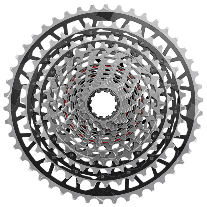 Die Kassette Sram Red AXS XPLR E1 XG-1391 bietet einen großen Übersetzungsbereich, damit Sie auf jedem Gravel-Terrain fahren können.