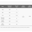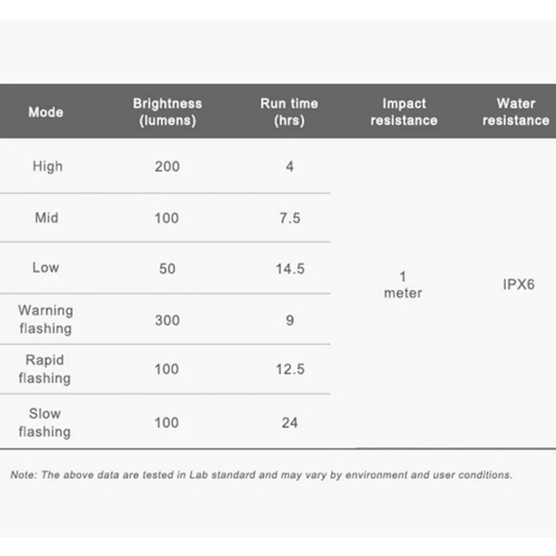 - Auffälliger Warnblitz für das Fahren bei Tag und mehrere Helligkeitsstufen für verschiedene Umgebungen