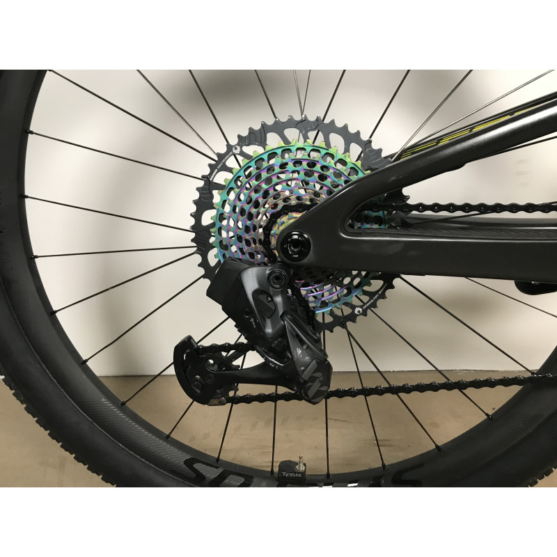 ¤Zur Ausstattung gehören eine elektrische SRAM XX1 AXS 12-Gang-Schaltung, Shimano XT-Bremsen und Syncros-Carbonräder. Eine Kombination, die Effizienz und Zuverlässigkeit auf anspruchsvollen Trails garantiert.