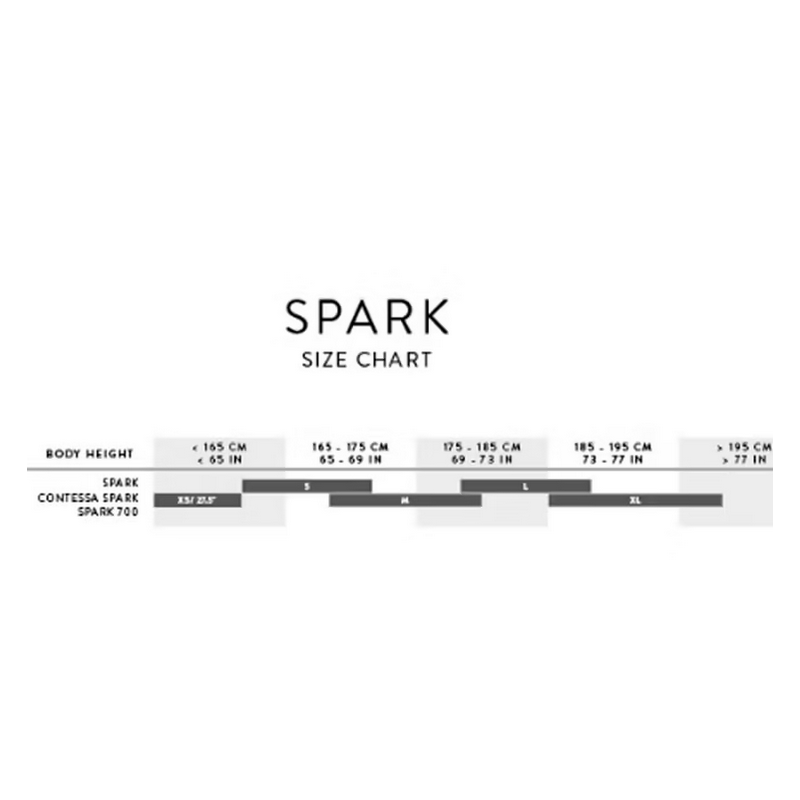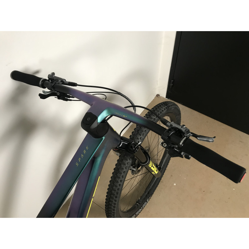 - Rahmen: SPARK RC Carbon HMX Integrated Suspension Technology Flex Pivot / Einstellbarer Lenkwinkel Syncros Cable Integration System BB92 / UDH-Schnittstelle / 12x148 mm mit 55 mm Kettenlinie