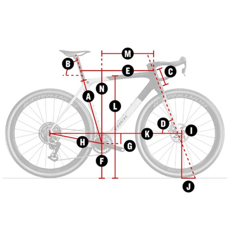 - Lenker / integrierter Vorbau: Integrierter Lenker/Vorbau Trek Aero RSL Route, OCLV Carbon, Race Fit, Tiefe 80 mm, Höhe 124 mm, Breite 37 cm an den Bremshebeln, Breite 40 cm in den Vertiefungen, Vorbau-Länge 70 mm (XS), 80 mm (S), 90 mm (M), 100 mm (ML, L), 110 mm (XL)