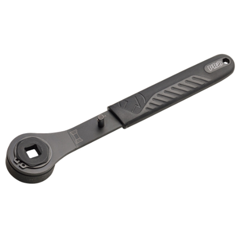 Das Pro Hollowtech II Bracket-Werkzeug dient zum Ein- und Ausbau von Shimano-Tretlagergehäusen mit Kartusche sowie zur Befestigung von Center-Lock-Buchsen mit Außenverzahnung. Dieses Werkzeug ist mit den 16-Zahn-Shimano-Hollowtech-II-Lagerschalen kompatibel und aus gehärtetem Stahl gefertigt, um eine höhere Festigkeit zu gewährleisten, während der Griff aus zwei Materialien für einen guten Halt sorgt.