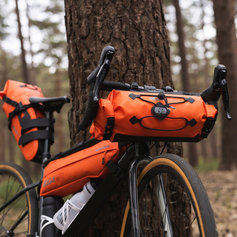 Die orangefarbene Oxford Aqua Evo Adventure Lenkertasche wurde mit einer Vielzahl von Funktionen für das Bikepacking entwickelt. Die wichtigste Eigenschaft der Aqua Evo ist ihre Fähigkeit, den widrigsten Wetter- und Umweltbedingungen auf langen Wochenendausflügen oder mehrtägigen Abenteuern standzuhalten.