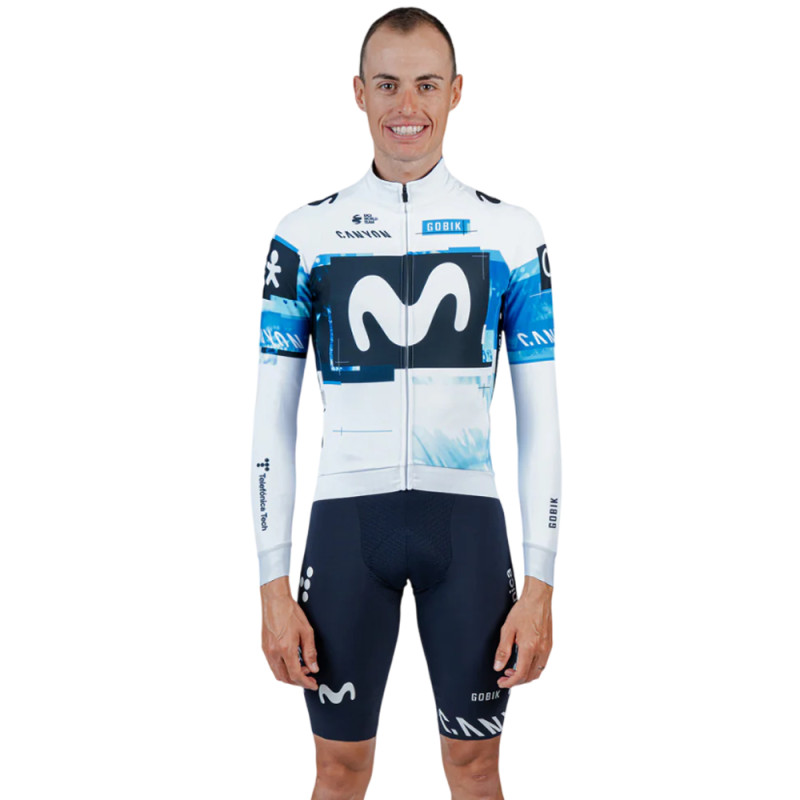 Das Langarmtrikot Gobik Hyder Movistar Team ist ein hochwertiges Funktionskleidungsstück, das speziell für winterliche Bedingungen entwickelt wurde und von Profi-Rennfahrern des Movistar Teams wie Enric Mas oder Nairo Quintana beim Training und in Wintertrainingslagern getragen wird. Dieses Trikot vereint Leistung, Komfort und Schutz dank innovativer Materialien und einer ergonomischen Passform, die eine ideale Körpertemperatur aufrechterhält und gleichzeitig einen wirksamen Schutz vor Kälte bietet.